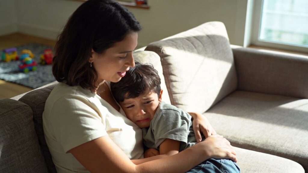 Spróbuj tego: Podejdź bliżej, weź głęboki oddech, schyl się do poziomu dziecka i powiedz spokojnie: „Widzę, że jesteś bardzo zły/a. Rozumiem. Ale tutaj nie możemy tego robić. Chodź, przytulmy się na chwilkę, a potem porozmawiamy o tym, co Cię denerwuje.”