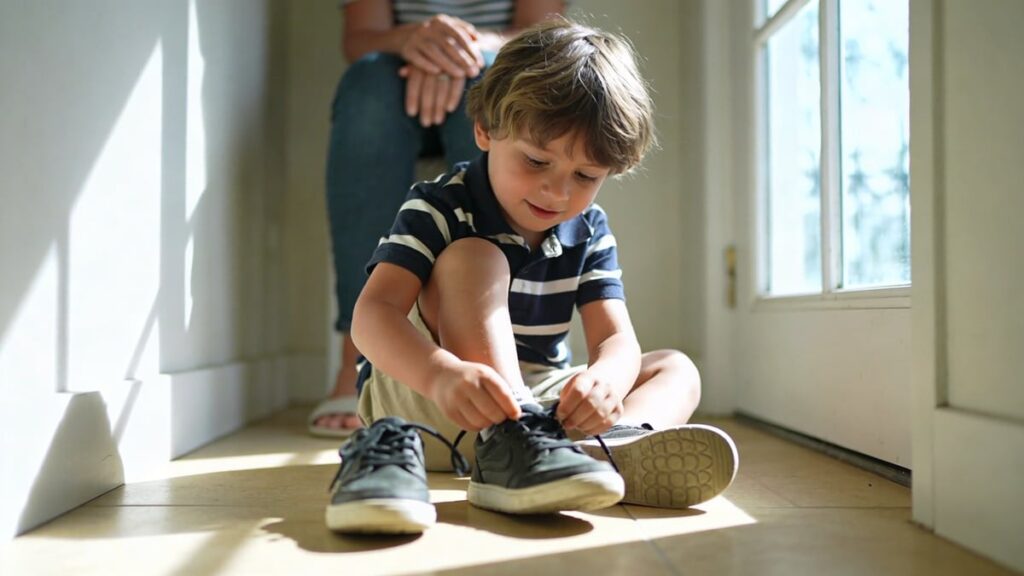 To podejście buduje umiejętności bez odbierania dziecku szansy na samodzielność. A oto co naprawdę pomaga – bądź cierpliwa, gdy coś idzie wolniej niż byś chciała.